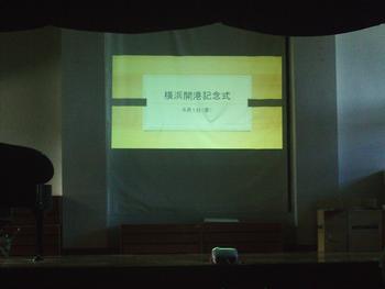 開港記念式は社会科部の先生たちによるスライドの発表でした。