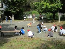 【1年生 下永谷市民の森 遠足】 27日(月)に下永谷第二公園と下永谷市民の森へ遠足に行きました。下永谷第二公園では、公園に落ちているものを用いて図工の「ならべてならべて」の学習を行いました。どんぐりや落ち葉、どんぐりの帽子、石などを工夫して並べる姿が見られました。下永谷市民の森では、いろいろな種類のどんぐりや葉を拾ったり、班でお弁当を食べたりしました。昼食後の班や学年で遊ぶ時間では、クラス関わらず楽しむ姿が見られました。