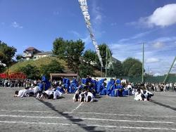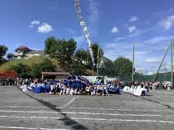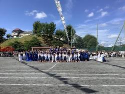 【6年生 声で!動きで!つ永るソーラン節!】 6年ぶりの5・6年生合同のソーラン節。練習は、「なんで今年は5・6年合同なの?」という子どもたちの素朴な疑問から始まりました。スポフェスのスローガンから、その意義をみんなで考え、共有し、「練習から見通しをもって自分から取り組んで 声と動きでつ永るソーラン節」という5・6年のめあてを立てました。 練習序盤から「どっこいしょ!どっこいしょ!」と、とても元気なかけ声が飛び交っていた6年生。その気迫がこもった姿に、5年生も引っ張られていました。一方で組立運動では、ピラミッドや波といった仲間と心を一つにして取り組む演目に難しさを感じ、何度も練習を重ねました。練習を通して、6年生が特に意識してきたのが「見通しをもって自分から取り組む」というめあてです。振り返りでは「最初は先生に言われてから動いていたけど、後半は持ち場について始まるのを待つことができた」「だんだんと自分たちで考えて行動できるようになった」という内容があがり、スポフェスを通して活動に取り組む姿勢についても成長が実感できたようです。当日はたくさんの温かいご声援ありがとうございました。