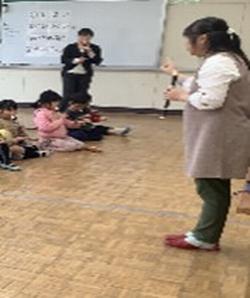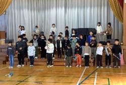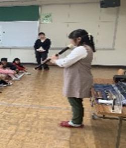 【2年生 リコーダー講習会をしました】 3年生から始まるリコーダーの学習に向けて、リコーダーの先生をお招きして講習会をしました。最初にピタゴラスイッチをソプラノリコーダーで吹いてくださり、驚きと歓声があがりました。その後はタンギングや持ち方など、リコーダーの基本を教えてもらいました。後半にはアルトリコーダーの音も紹介してくださり、色々な音があることに気が付きました。