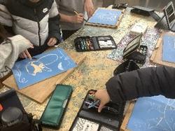 【4年生 はじめての彫刻刀を使って版画の学習が始まりました!】 「手を切らないか心配…」「でも楽しみ!」と言いながら、版画の学習が始まりました。板に自分の描きたいものを下書きして、三角刀や丸刀を使って慎重に掘っていました。次の時間はインクを使って刷っていきます。
