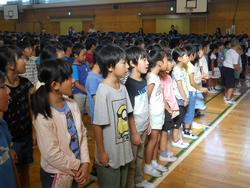 13日、3連休の後、前期始業式を行いました。校長先生からは、映画「バックトゥザフューチャー」の主人公が未来へいった話を紹介、夢をもって努力し続けることでできることで様々なことができるようになる。後期も夢をかなえるために目標をもって取り組みましょうとの話がありました。3年・6年児童代表が後期に向けてがんばることを発表しました。