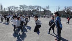 14日の中休みに全校で縄跳び大会を行いました。体力づくりの一環として、朝の時間、体育の時間や休み時間に8の字跳びに取り組んできました。練習の成果を発揮し集中してクラスの最高記録を目指しました。中田小の広いグランドを生かして全校一斉に3分間のチャレンジ。6年生は300回を超えたクラスもありました。