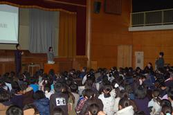 本校は今週を人権週間と位置づけ、自分の生活を振り返り誰もが安心して過ごすためには何が大切かを児童に考えさせています。11日には、日本体育大学の2年生でパラアスリートの松本雄大さんと同じく日本体育大学の陸上競技部パラアスリート部門監督の水野洋子先生にお越しいただき人権講演会を行いました。「挑戦」というテーマで、生まれつき左手がないにもかかわらずサッカーに打ち込んだ小中高校時代のことや自分が左手がなく生まれた意味を考え日本体育大学へ入りパラアスリートになったこと。水野先生と出会い大きく成績を伸ばしジュニア大会で三種目で優勝しながら今年のアジア大会では大きく成績を落としたことなど、これまでを振り返りながら折々の思いを話してくださいました。その中で大切にしてほしいと思う気持ちを熱心に聞いている児童に伝えてくださいました。講演会の中では、本物の金メダルを児童に回してくださったので、児童も大変興味深く触ったりながめたりしていました。最後には、児童からのたくさんの質問に答えてくださり、講演会は幕を閉じました。