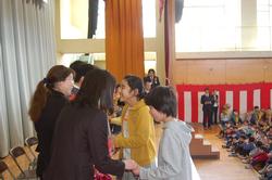 25日、修了式に引き続き、これまで中田小のためにご尽力いただいた教職員に感謝の気持ちを伝えるため離・退任式を行いました。昨年から全市的に年度末に行われるようになりました。離・退任される先生方に子どもたちから花束を贈りました。離任される先生方からは、中田小の思い出やがんばってほしいことなどの話をいただきました。思い出や気持ちを心に刻み前に進んでいきましょう。