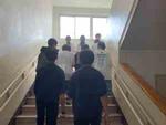 今日は6年生が中学校体験に行きました。各教室に自由に入って参観したり、廊下の掲示物を眺めたりしました。 | ||