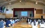 中学校の一日をスライドで教えてもらった後は、楽しみにしていた部活動体験です。中学生が親切に説明したり教えたりしてくれる姿に安心しました。 | ||