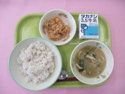 今日のメニューは、ごはん、生揚げのそぼろに、いそかあえ、牛乳です。