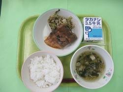 今日のメニューは、ごはん、さばのみそに、磯香あえ、すまし汁、牛乳です。