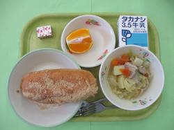 今日のメニューは、あげパン、野菜のスープに、しらぬひ、牛乳・チーズです。