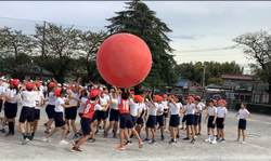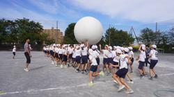 中川小学校のリーダーたちが力強いパワーで大玉を送ります。