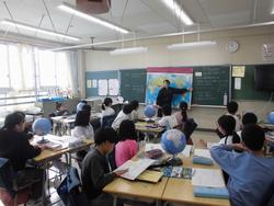5年生は、社会科の学習で、地図や地球儀を読み取りながら「ワールドツアー」へ出かけていました(上段左)