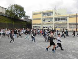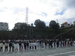 4月当初は、集団登校を実施しています。