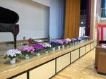 一年生と委員会で育てた花が体育館へ向かう花道を彩っています。