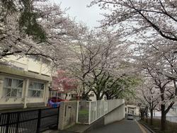 正門周辺の桜。ソメイヨシノ。去年より2週間くらい遅いです。入学式・始業式にぴったりな年も珍しいです。