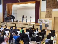 前期終業式の後、運営委員会の子どもたちによる運動会プログラム表紙の報告会がありました。