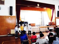 1月29日(木)音楽集会を行い、1年生が「フルーツケーキ」、「どんぐりぐりぐり」の2曲を合唱や鍵盤ハーモニカなどの楽器の演奏で発表しました。会場の体育館には、1年生の元気で明るい歌声と、鍵盤ハーモニカを中心とした楽器のきれいな音色が響き渡りました。