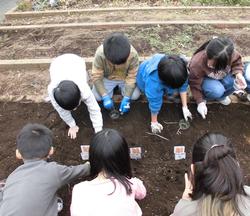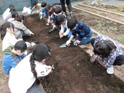 「早く芽が出るといいな。」「食べるのが楽しみだな。」という声がたくさん聞こえてきました。これから毎日、学級の花壇に行ってしっかりお世話をすることと思います。