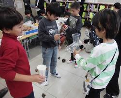 1年生は、生活科の「秋とともだち」の学習で、「落ち葉や木の実を変身させよう」という目当てで、拾った落ち葉やどんぐりなどを使ったおもちゃ作りをしました。マラカスやどんぐり迷路などを工夫して作る姿が見られました。