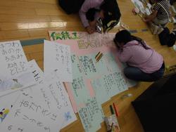 伝統工芸クラブでは部員の皆さんが書き書き・・・、お正月に向けて巨大かるたの制作に取りかかっていました。