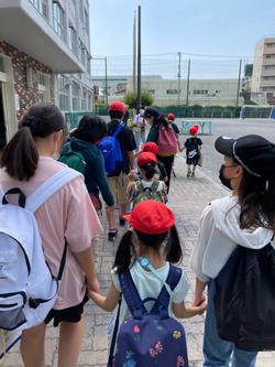 お兄さんお姉さんたちが話しかけてくれるので1年生も疲れを感じずに目的地に到着することができました。