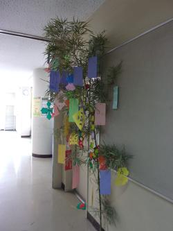 明日は七夕、校内にもたくさんの七夕かざりが飾られています。