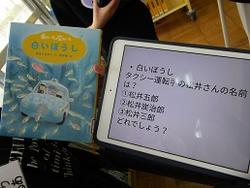 今回は、高学年を対象としたクイズ大会でした。国語の授業などで、子どもたちが知っている本をクイズにして出題していました。