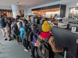 学校から電車を乗り継ぎ、みなとみらい駅に到着。まずは「横浜ランドマークタワー」です。エレベーターで69階の展望フロアへ。子どもたちは空からの横浜の景色に感激していました。