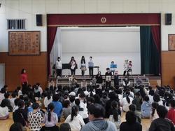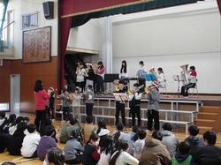 最後の演奏曲「We Wish You A Merry Christmas」は、コンサートを観に来た子ども達みんなで、金管バンドの演奏に合わせて合唱しました。体育館が素敵なChristmasソングに包まれました。