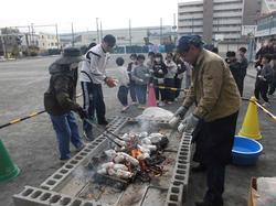 毎年、三麦会の方々にご協力いただき、焚火で焼きいもを作っていただいています。早朝よりお集まりくださり、火起こしや焚火の管理をしながら、さつまいもの焼き加減を丁寧に見て、おいしい焼きいもを作ってくださいました。