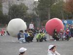 校庭で赤白に分かれて大玉送りをしました。