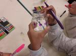 そこで、全校のみんなに呼びかけ、キャンドルを入れる瓶に絵を描いてもらっています。