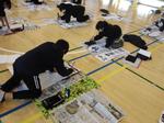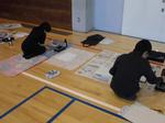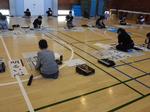 今日は5年生と4年生が体育館で書初めを行いました。