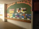 各学年の廊下に本校児童の作品だけでなく、近隣の幼稚園や保育園、中学校、高等学校、支援学校、海外の児童の作品も展示されています。