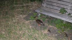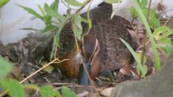 6月27日の夕方、小学校の車両門の脇の花壇に一羽のカルガモを見つけました。最初はじっとしていて、死んでしまったのかと心配しましたが、次の日には向きを変えて元気な姿を見せてくれました。先生たちで見守っていると、どうやら卵を温めている母ガモだと分かりました。カラスやネコから守りながら、卵は8個あることを確認。