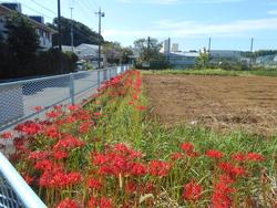 秋分の日をすぎ、朝夕は涼しさを感じる季節になりましたが、日中は30度に迫る気温です。そのような気温の中、正門前の畑には、ヒガンバナがきれいに咲いています。今、4年生が国語で学習している「ごんぎつね」にもヒガンバナが登場します。4年生には、「本物のヒガンバナをみてね」と伝えました。(9月24日)
