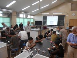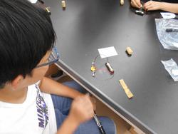 9月26日(金) 科学実験クラブではNPO法人「かながわ子ども教室」の皆さんによる科学実験を実施しました、「簡易モーターづくり」と「ぶんぶんゴマによる発電」は、いずれも電気の性質を利用した実験でした。子どもたちのテーブルに支援者の皆さんがついていただき丁寧に指導していただきました。体験を通して、電気の性質を実感していました。