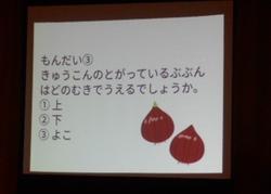 今回のたてわり集会は1年生が担当でした。1年生が今まで学んできた「植物」や「給食」、国語で学んだ「自動車」のことなどをクイズ形式で発表しました。どの学年も真剣に考えてクイズに答えていました。なによりも、1年生がしっかりと調べて発表してた姿はとても立派でした。(12月5日)