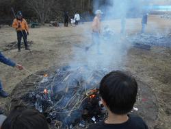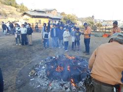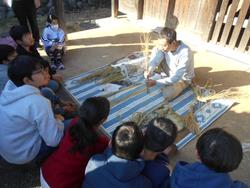 1月14日、里山交流センターで「どんど焼き」が行われました。5年生は、自分たちで作った正月用のしめ縄を焚き上げました。その後、わら細工の実演を見学しました。職人の関さんが作るしめ縄を見た子どもたちは思わず、「美しい!」とい声があがりました。子どもたちが実際にしめ縄を作ったからこそ出た言葉だと感じました。やはり直接体験は大切です。(1月14日)