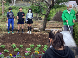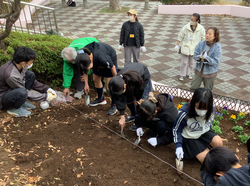 飼育栽培委員会では、PTAや地域の方と一緒にチューリップの球根を植えました。
