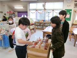 5年生が近隣の幼稚園の年長児を学校に招き、校内を案内しました。