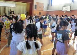 集会委員会による全校の集会がありました。今回は、クラスごとに1列に並び、ボールを上から下から、右から左からと受け渡していくゲームをしました。子どもたちは協力して声をかけながら楽しんでいました。