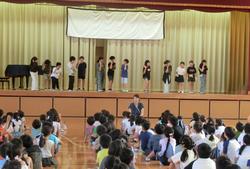 個別支援級では、「みつけたよ!できたよ!なつやすみ」で、夏休みにがんばったことや発見したことを友達に伝えました。たくさんの人に囲まれながらも堂々と発表する姿は素晴らしかったです。友達の体験したことを聞き、質問することもたくさんできました。