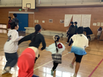 ドッジボールクラブでは、異学年とチームを組み、試合をして楽しく活動を行っています。