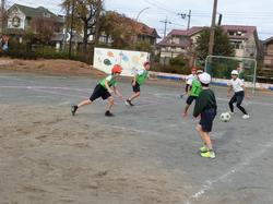 サッカークラブでは、異学年が混ざってチームを作り、練習や試合をして楽しみました。