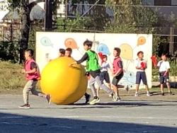 全校競技 大玉送りの進行を一生懸命がんばっています。