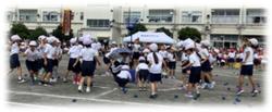 1・2年生の演技「ぜんりょく しんけん あきらめない みんながしゅやく レッツ ダンス!!」では、「こたえあわせ」と「ダンスホール」の曲に合わせて踊りました。低学年らしいかわいいダンスを見せることができました。