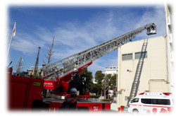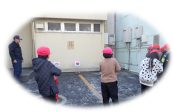 12月11日(木)、3年生は栄消防署へ社会科見学に行きました。消防署内や消防車の説明を聞いたり、水消火器を使って消火体験をしたりしました。はしご車で屋上の人を救出する訓練も見学することができました。最長35mの高さまで伸びるはしごは、間近で見ると迫力満点でした。