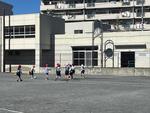 校庭の梅の花がようやく咲きました。近くで見ると薄ピンク色でとても可憐です。強風で寒い日ですが2年生が元気にボールを蹴る運動でたくさん体を動かしています。日差しに春の気配がします。