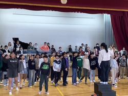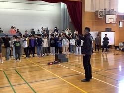 6年生は11月8日(土)に控えた本校60周年を祝う会で音楽とボディパーカッション、ラップの演奏で会を盛り上げます。今日は「ラップってなに?」と何も分からない出発の時から一緒に伴走してくださった地域の先生に仕上げの様子をご覧いただき、ご助言いただきました。先生に「よくここまで、がんばってきたね!」とほめていただきました!本番は楽しんで!